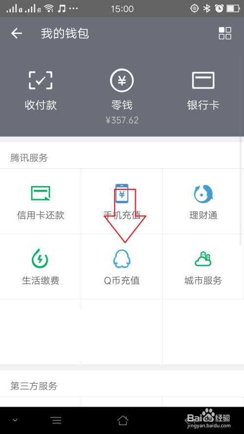 点击钱包进入到我的钱包页面,找到Q币充值,如图