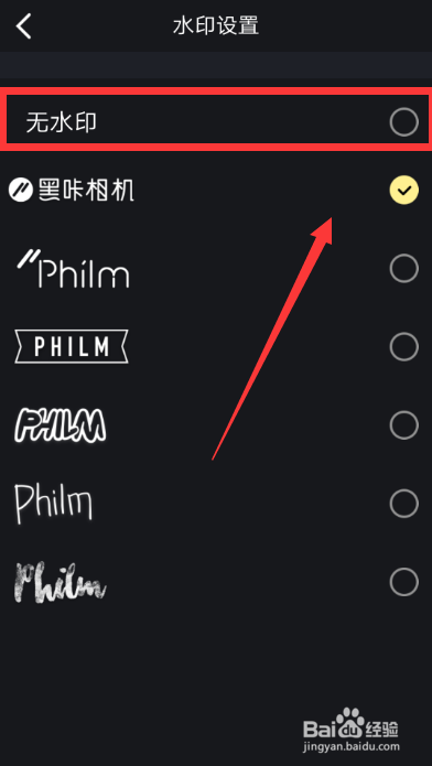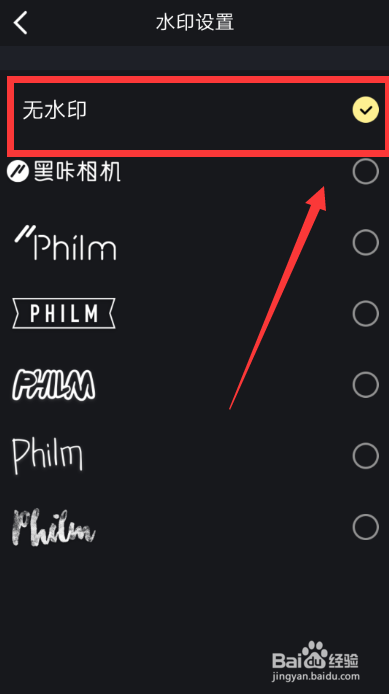 【水印设置】的页面,点击“无水印”这一项。