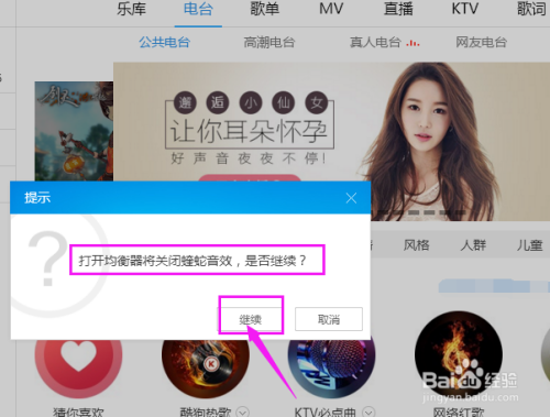 要开启平衡器,就必需先关失落此刻的音效。点击【继续】。