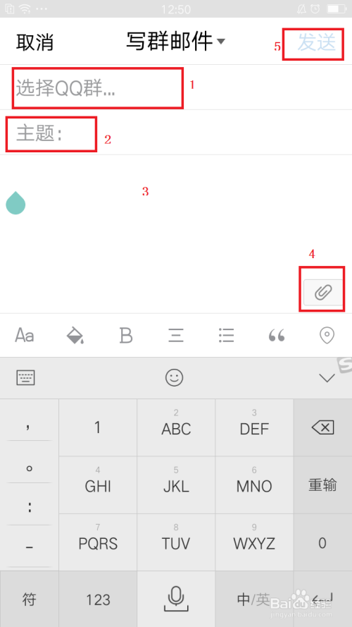 点击“写群邮件”之后,在"QQ群“选项那边,点击下拉选项,里面会显示所有开通QQ群邮箱的QQ群,选择一个QQ群。然后输入本家儿题,添加文件,点击发送就可以了。