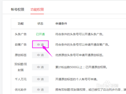 前提都达到的话,点击【申请】就能开通自营告白了。