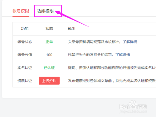 登录后,点击【功能权限】。