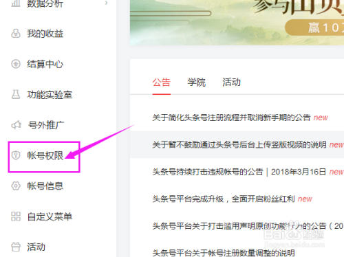 登录后,点击【账号权限】。