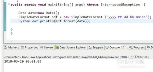 操纵SimpleDateFormat格局化日期,例如我想获取一个时候格局为2018-03-20 20:15:11,代码如图