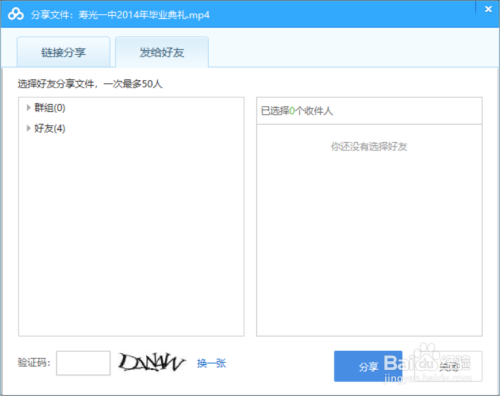 分享给伴侣的话就会进入联系人列表界面,分享给零丁的老友需要点击老友头像,若是群发需要点击分组进行分享,老友分享没有密码。