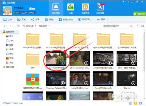 利用百度网盘首先需要登录注册百度账号,本身百度网盘上的视频可以经由过程链接分享,第一步选择本身要分享的视频,选中方针。