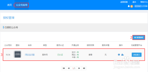 登录平台 - 公家号应用 - 新增授权 - 绑定公家号;