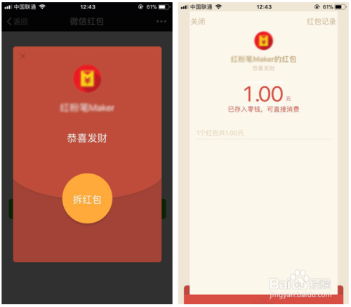 用户点击“防伪动静”样式的红包即可领取到用户零钱包;