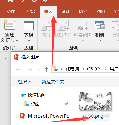 输入好了文字字号我们点击插入菜单插入我们筹办好的图片。