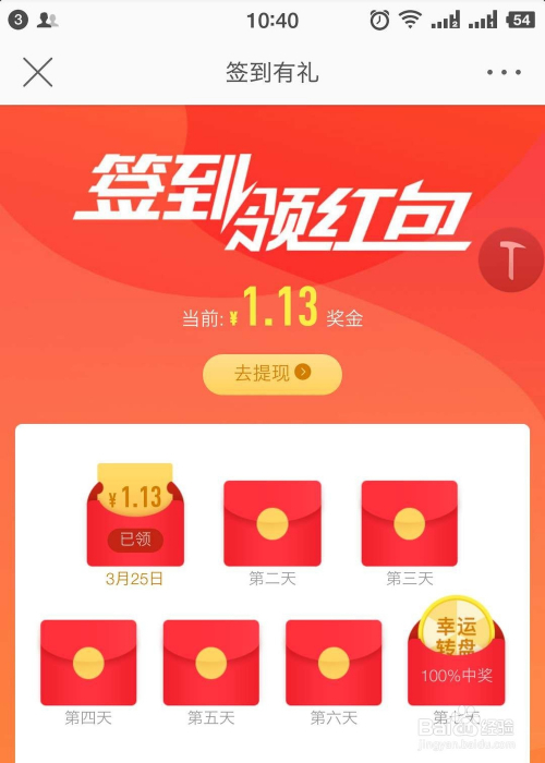 进入后,我们就可以看到当前签到的金额。