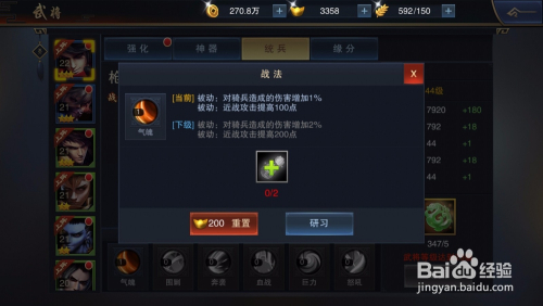 进入武将列表后,再点击需要进级统兵的武将进去进级。