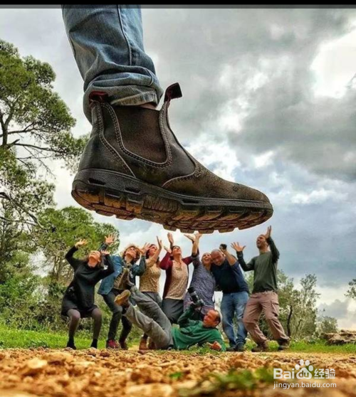 摄影师趴地上拍摄,接近镜头前面伸一只脚出来,然后后远方站一排人,感受就像被踩脚下的感受。