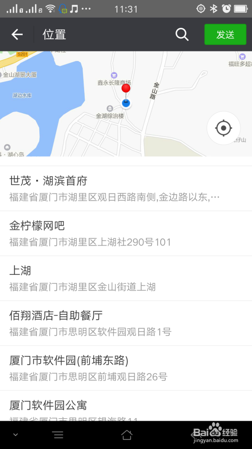 点击位置弹出小窗显示发送位置和共享及时位置,如图