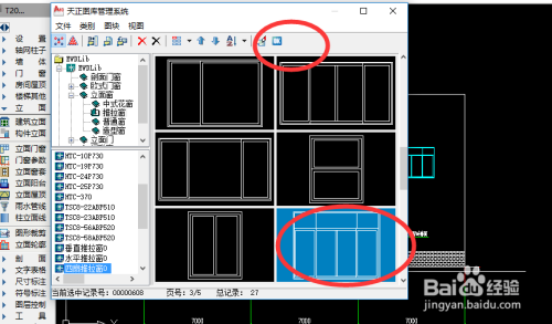 单击立面门窗后,弹出图库办理对话框,我们选择立面窗的类型,选择好之后,单击右上角,OK,退出。