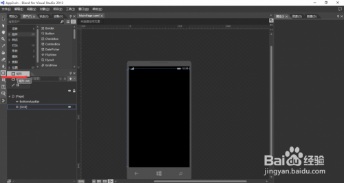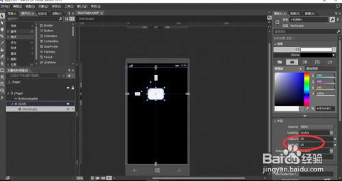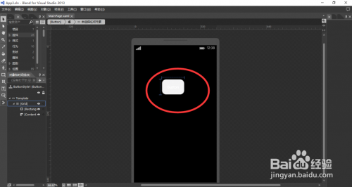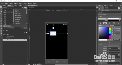 选择Blend左边的矩形(也可以用椭圆),直接拖到手机界面,如下图所示: