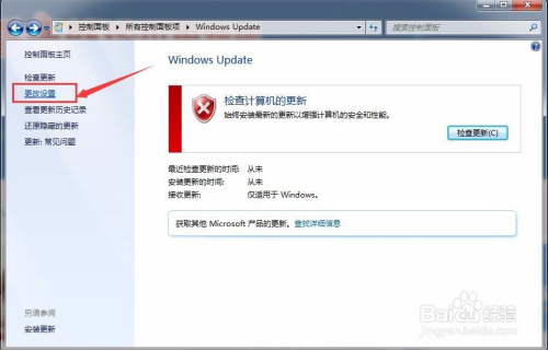 当然了,若是节制面板的查看体例是小图标或者年夜图标的,那么就需要找到Windows Update图标点击进入了,然后点击左侧的更改设置进入点窜页面。