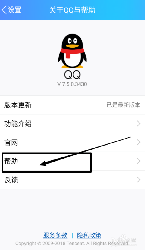 然后点击【关于QQ与帮忙】