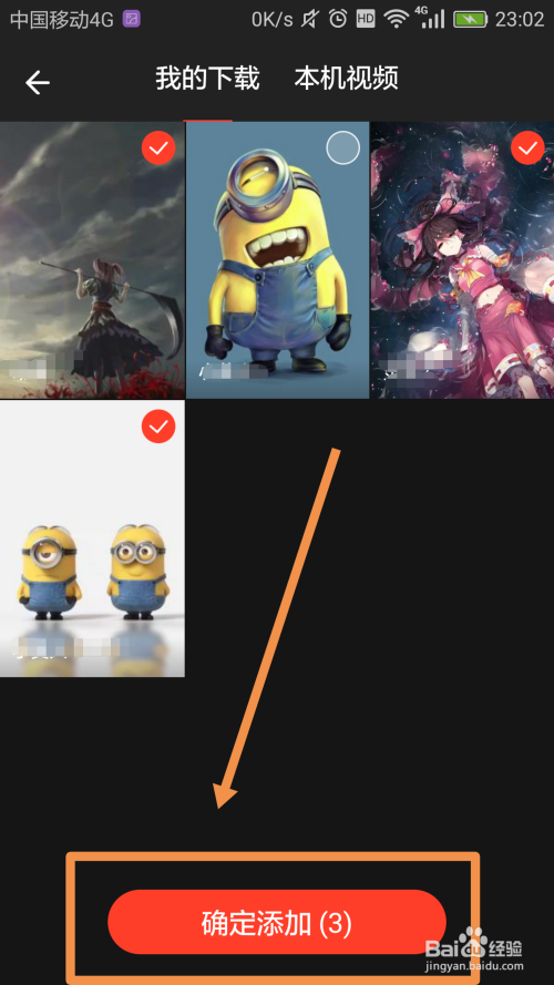 进入我的下载界面,勾选几个喜好的视频壁纸;这里以三个视频壁纸为例,勾选此中三个视频壁纸,然后点击【确定添加】,如图: