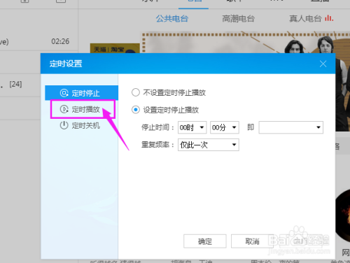 选择起头时候,反复频率,播放歌曲后,点击【确定】。然后封闭这个页面就可以了。之后只要时候一到,就会主动播放音乐。