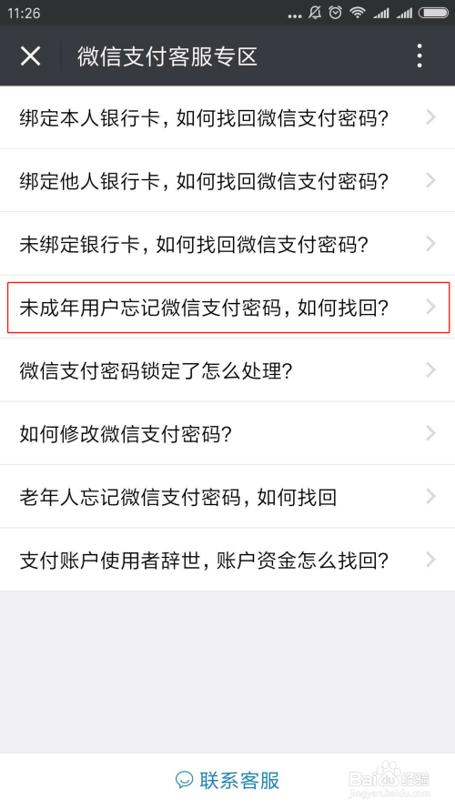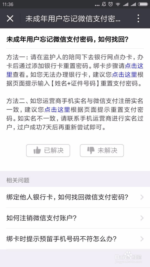 若实名是未当作年人没有银行卡,我们可以在适才的“微信付出客服专区”选择,“未当作年用户健忘微信付出密码,如何找回”,按照页面提醒选择合适的解决方案