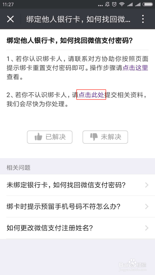 若实名绑卡人不熟悉,我们在微信钱包->右上角四个方框中选择->“帮忙中间”->下方“账户问题”->下方“密码问题”->“付出密码问题”->“绑定他人银行卡,何如找回微信付出密码?”->“点击此处”按照页面提醒填写本人资料找回即可