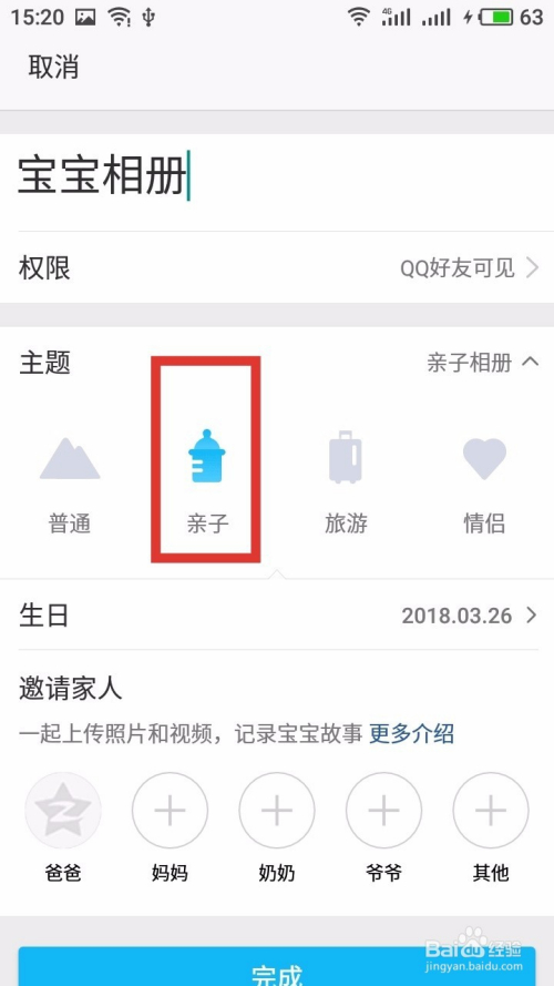 宝妈和宝爸都可以建立亲子相册的,建立时注重填写相册名称,宝宝出生日期、性别等,添加家人信息,包罗爷爷奶奶外公外婆等等