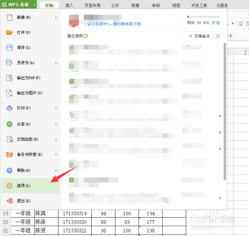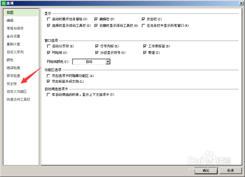 在弹出的下拉菜单内,如图所示,点击“选项”(带有小齿轮标记)。在“选项”页面内,点击第十个选项“平安性”。