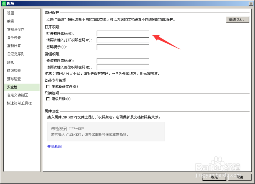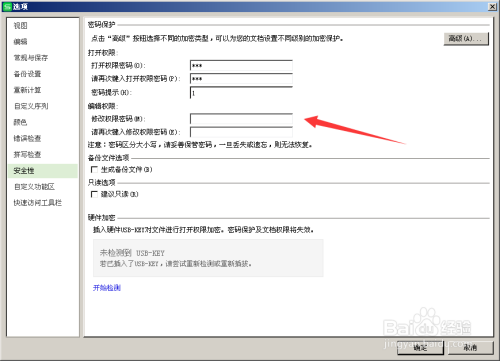如图显示“打开权限”密码设置,以及“编纂权限”密码设置。