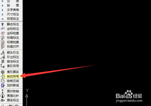 当我们需要剖切符号时,单击左侧东西条——符号标注——剖切符号。