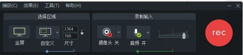选择录制的区域,全屏仍是自界说尺寸,再选择录制输入,选择是否录制摄像头和音频。