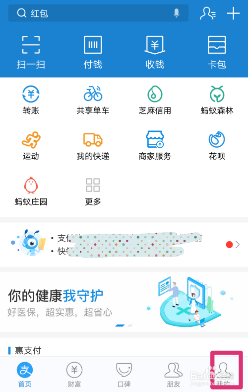 打开付出宝。点击右下角“我的”