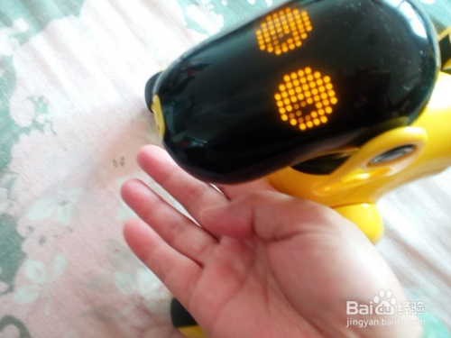 如何和电子 “宠物狗”"玩",将电子“宠物狗”布满电后放在床上后,用手轻轻的在电子“宠物狗”的下吧摸一下,电子“宠物狗”就起头哼哼唱歌了。