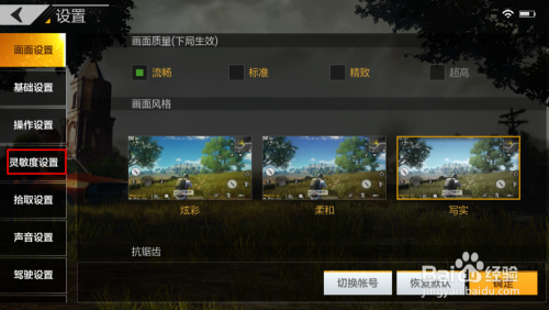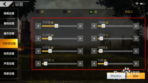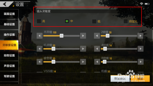 下方是“陀螺仪”的活络度,这里也有三个档次。这个陀螺仪就是我们利用偏向键的阿谁活络度。