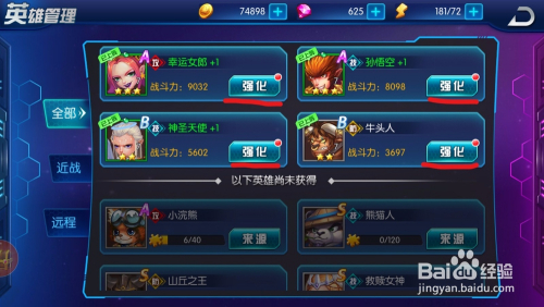 进入到英雄界面之后,选择一个英雄直接点击后面的强化!