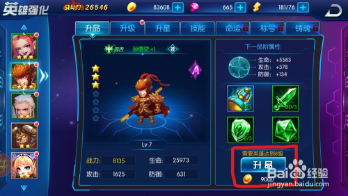 若是材料充沛,直接点击升品就能升品脚色。在升品后就能看到脚色的属性改变了几多!