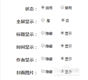 选择模板一,内容编纂页面可以选择埋没或者显示题目、时候、作者、封面图片