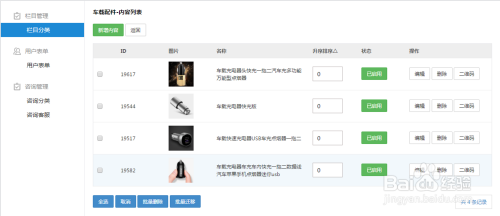 一级分类编纂完当作之后点击【内容】添加内容