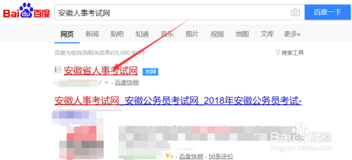 打开百度直接搜刮安徽省人事测验网,然后点击搜刮里的官网,如下图所示。