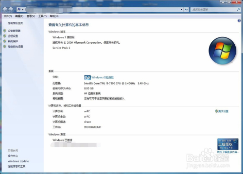 最后打开我的电脑,然后找到系统属性,在系统属性的最下面已经可以看到激活的系统的字样