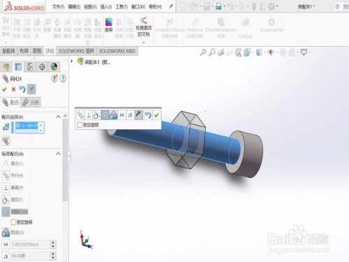 选择好共同选择的两个面,选择尺度共同的关系为同轴心,最后选择绿色的对号符号。