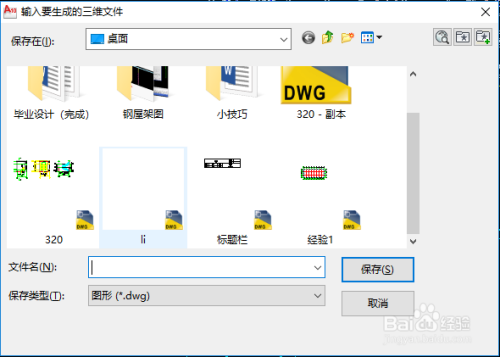 然后,又弹出对话框,给要生当作的三维文件定名,并选择保留位置。