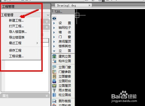 单击确定后,呈现工程办理窗口,,继续单击工程办理,弹出下拉菜单,选择新建工程。