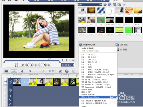 执行分享-建立视频文件号令,从中选择mpeg-4 mobile phone类型。