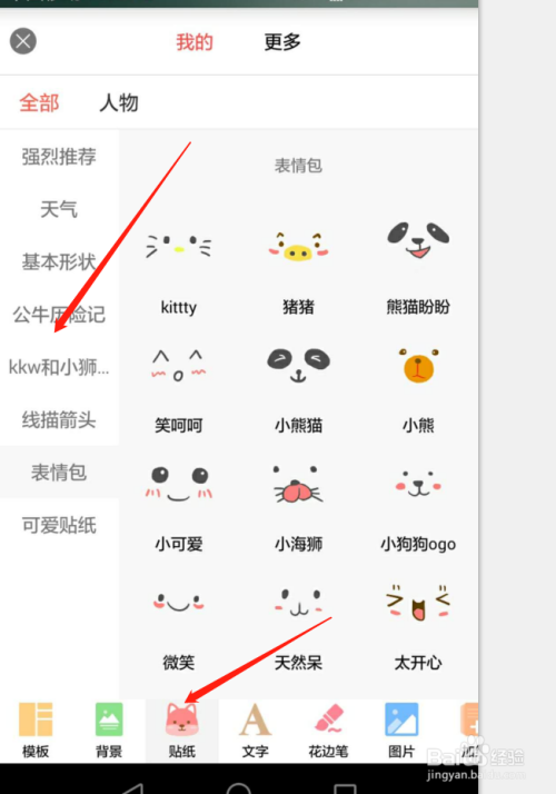 首先我们点击底部面板贴纸功能,你就会看到很多的贴纸素材点选就可以用了哦