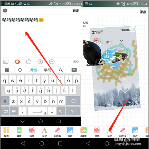 然后我们点击底部面板文字东西,输入本身的案牍,