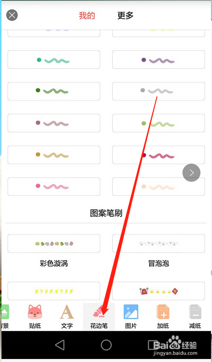 我们也可以插手花边笔东西,你就会看到有两种笔:1.荧光笔刷 2.图案笔刷