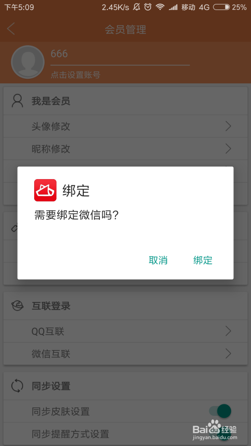 点击微信互联之后,会弹出确认窗口,点击绑定即可。