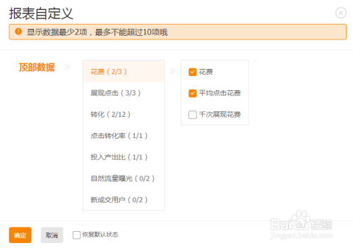 在弹出的窗口中,我们可以自界说报表数据