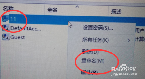点击用户之后右边会呈现当前计较机上所有效户,鼠标右击想要更改的用户弹出重定名点击。