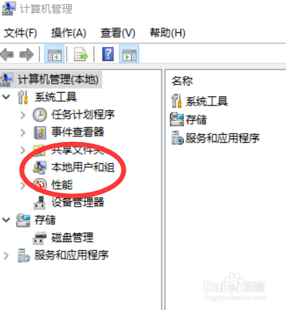点击办理之后来到计较机办理页面,依次点击当地用户和组。